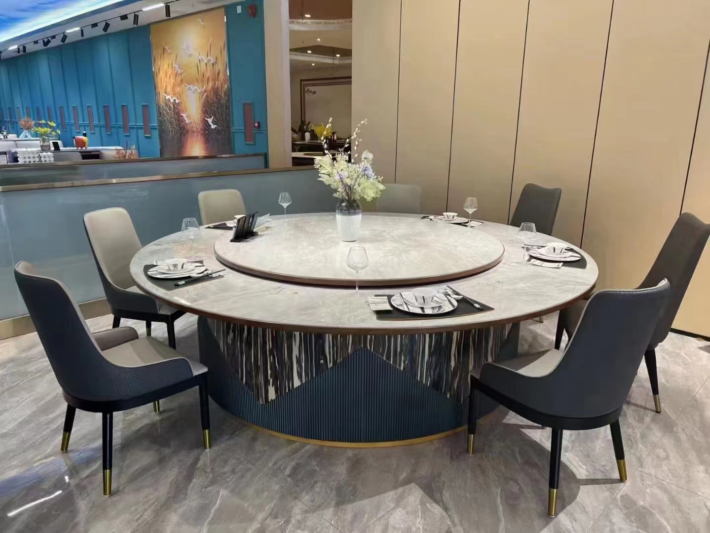 【電動餐桌-隱形電磁爐-巖板】 編號:1000