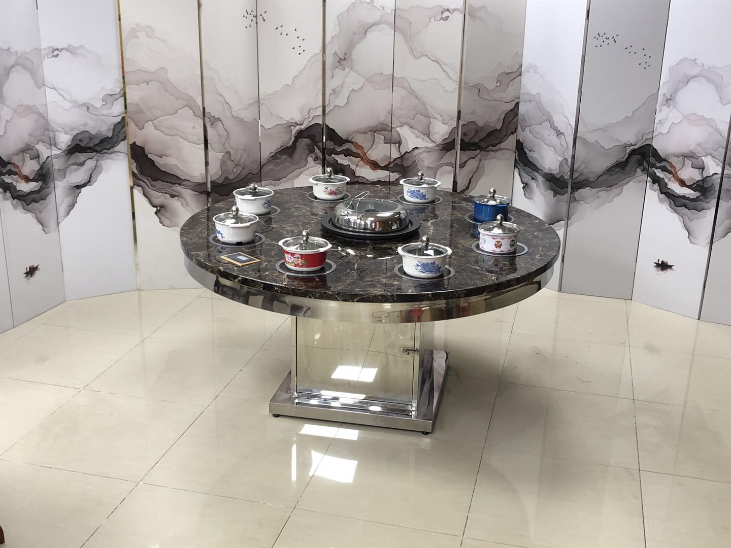 【電動蒸汽火鍋桌-大理石不銹鋼桌】 編號:1900
